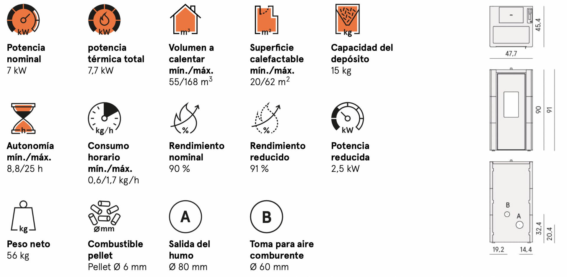 La gama Cristal se amplía. Una potencia de 7 kW y una óptima relación calidad-precio caracterizan esta nueva estufa funcional.