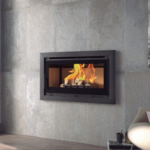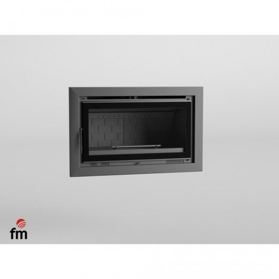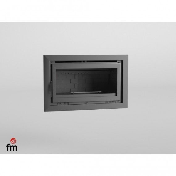 Estufa de leña insertable con turbinas y marco a 4 caras modelo IT-100 F/K de la marca FM Calefacción, equipo fabricado en acero de hasta 4mm con acabados de alta calidad y resistencia. Además de un diseño elegante.