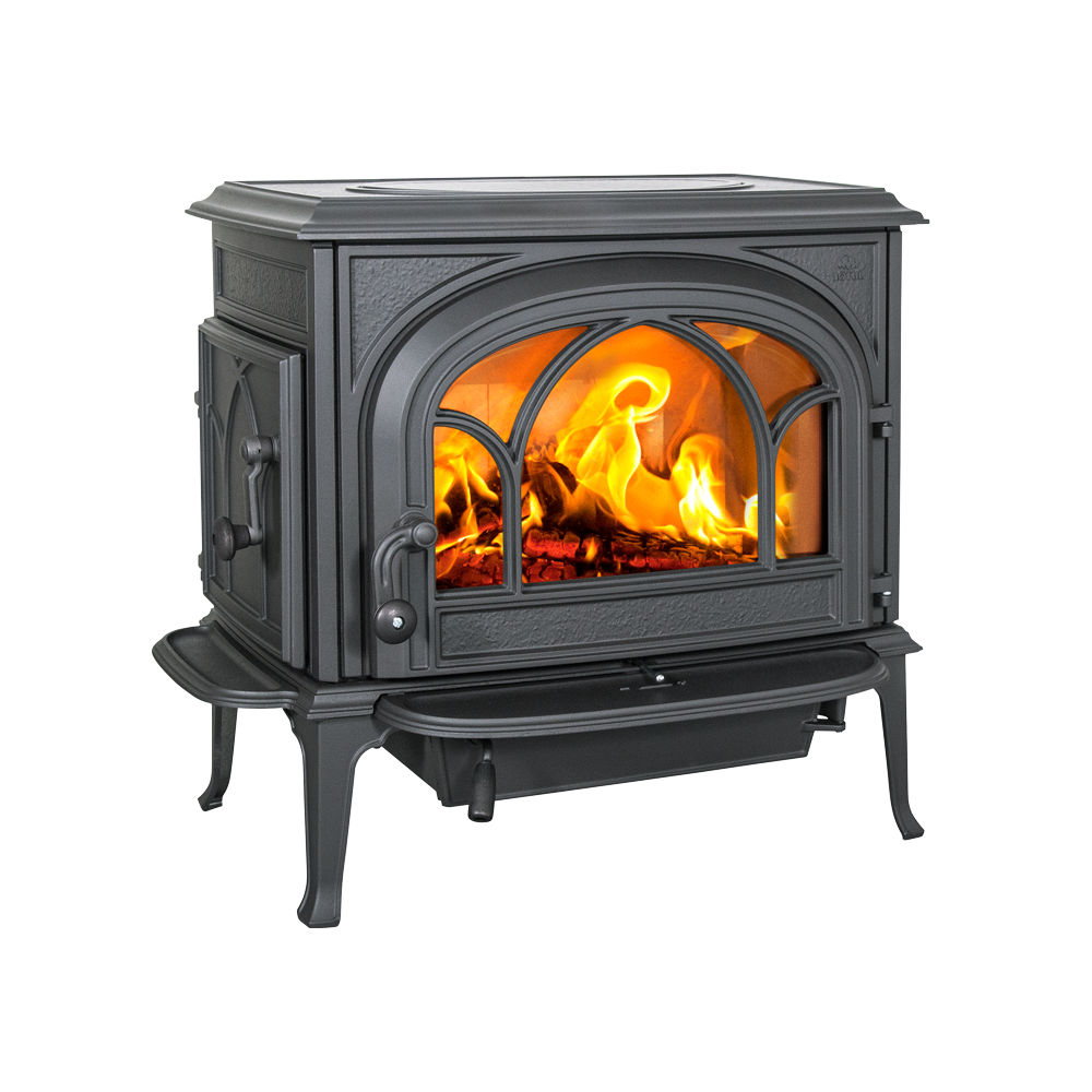 Esta es una gran estufa de leña en diseño clásico-colonial, con fantástica visión de fuego. Su cenicero con puerta independiente, y la puerta lateral facilitan la eliminación de ceniza y la carga de leña. Su diseño clásico no está reñido con una moderna tecnología de combustión y un control de la entrada de aire unificado tanto para sistema Air Wash como suministro primario de aire. El sistema de entrada de aire CB (Clean Burn) es autoregulable para una óptima combustión.