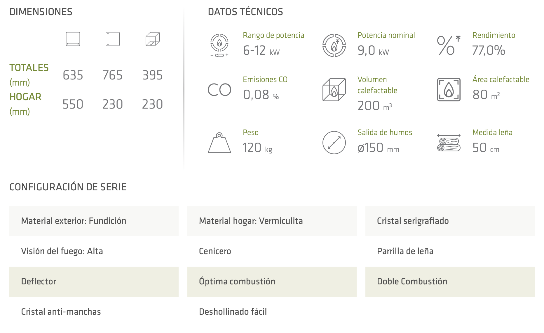 BIARRITZ cuenta con un eficiente sistema de doble combustión con el que se obtiene una combustión perfecta que contribuye a la sostenibilidad del medio ambiente