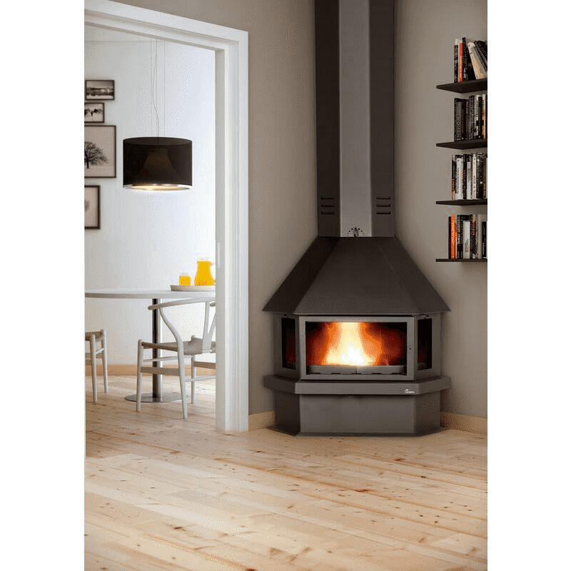 Las chimeneas CM300 se adaptan a tus necesidades. Si te gusta mirar al fuego de frente, de lado o desde cualquier ángulo, esta es tu chimenea. Un aparato de leña que se caracteriza por su forma acampanada y funcional.