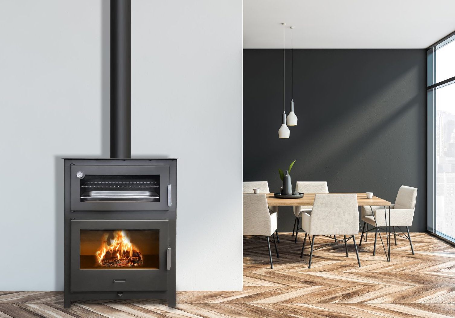 • Horno de gran capacidad con base de ladrillo refractario